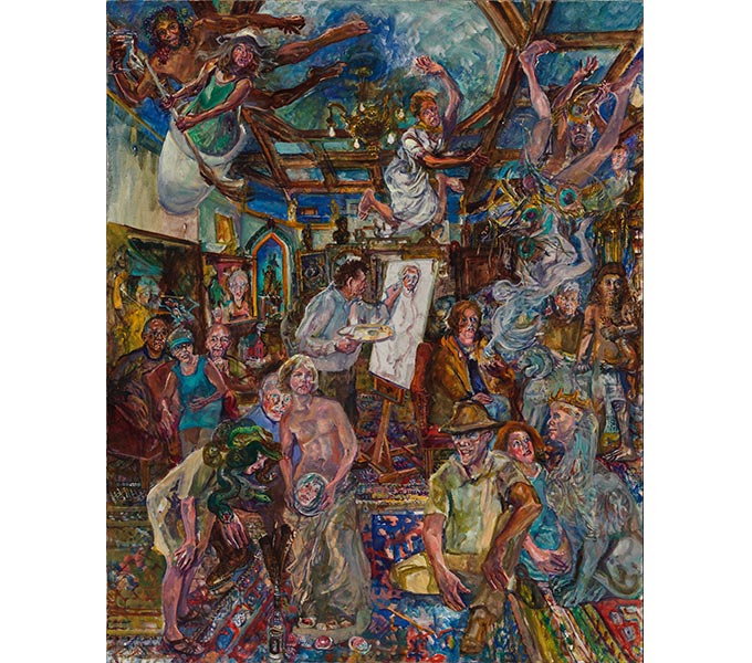 My large paintings are usually set and executed in public places. For this project, however, about art in the Chicago area, renowned Chicago artist James McNeill Mesple let me use his studio. Mesple is fascinated by the mythical roots of contemporary art, so this seemed the occasion to people his studio with prominent Chicago artists and collectors, painted from life (including Encarnacion Teruel, Director, The Illinois Arts Council, Jane Stevens, Director, Illinois State Museum Chicago Gallery, and Jessica Jagielnik of the PMA) in the guise of figures from classical mythology. "On Ida's Shady Brow" has been shown at the National Academy of Design in New York Annual Exhibition as well as in my solo show in New York at Denise Bibro Fine Art, my dealer. The title of the painting is the first line of William Blake's poem, "To the Muses."