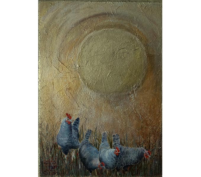 I love nature with all my heart. Its multitude of shades feels so rich that I find that the color gold is the best way to express its plethora. It's almost impossible to transfer onto canvas something as continually changing as the wind, the flight of birds, light, and shadows. At the same time, the silence of trees and the calmness of falling leaves often makes me want to present those phenomenon as idle and static. At other times, this calm sometimes awakens a burst of accumulated energy that brings forth my abstract work.