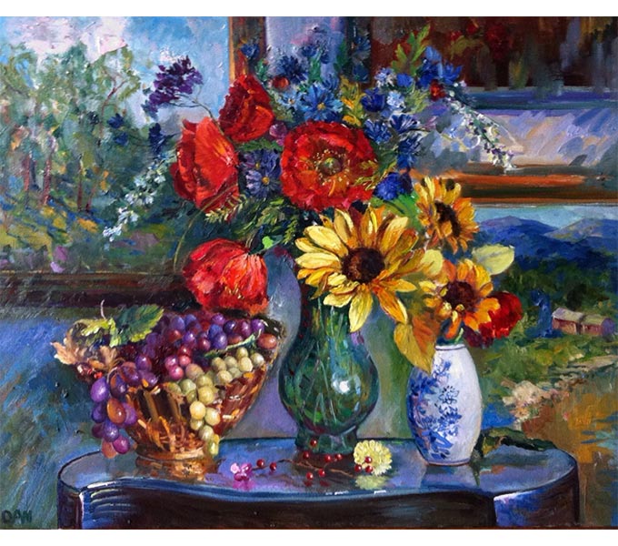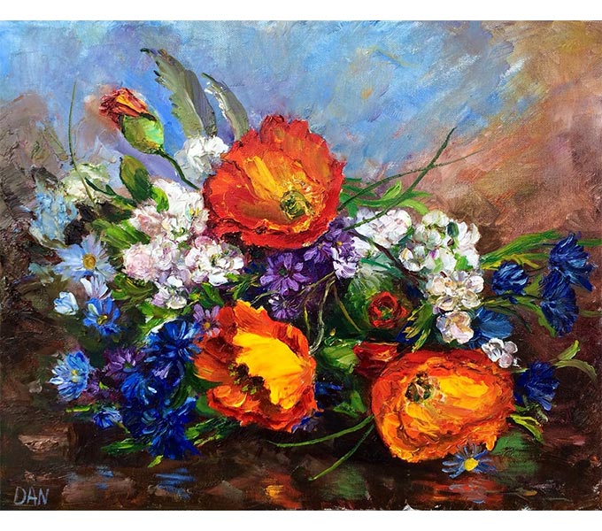 The main direction of my work is impressionism, and my paintings are in the genre of still life and landscape. My collection of works also includes pictures painted in the fantasy genre. When choosing materials for my work, I prefer canvas and oil and I use the Alla Prima (also known as "wet on wet") oil painting technique.