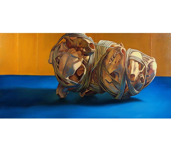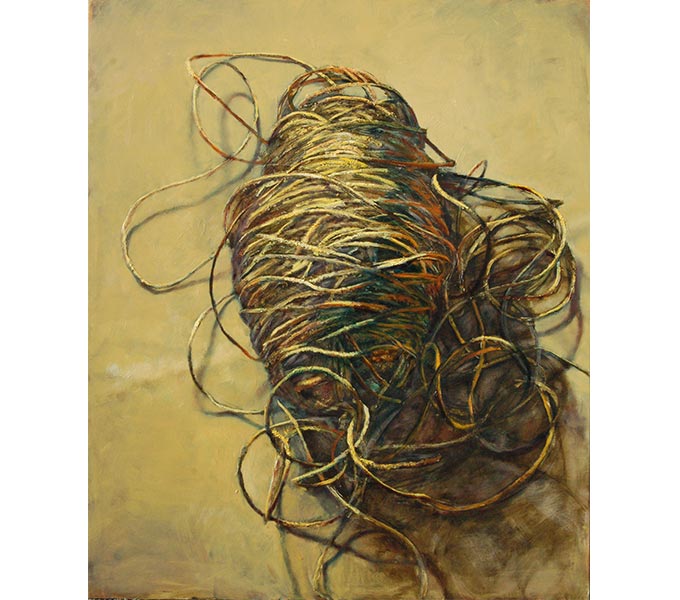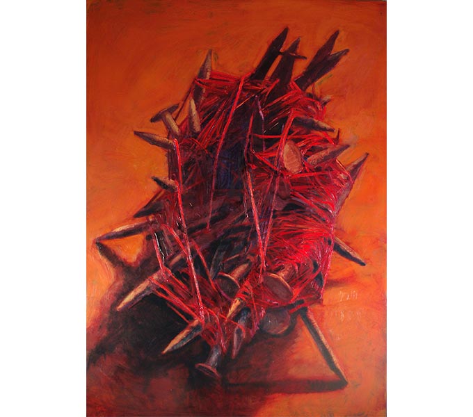 I think of my still-lifes as meditation on the human experience. An important part of my process involves searching for objects that can be interpreted as having some sort of history or can be manipulated to invoke certain kind of feeling. They often can be seen as representing the human body, state of mind, or religious ceremony. Cloth, for example, can speak of concealment or secrecy, religious ceremony, or death, but can also act as skin - the web of folds and creases forming a record of the passage of time. Old nails can be associated with martyrdom (as in the Catholic religion), but also in some African religious practices old nails and screws were driven into wooden sculptures as a means to deliver prayers.